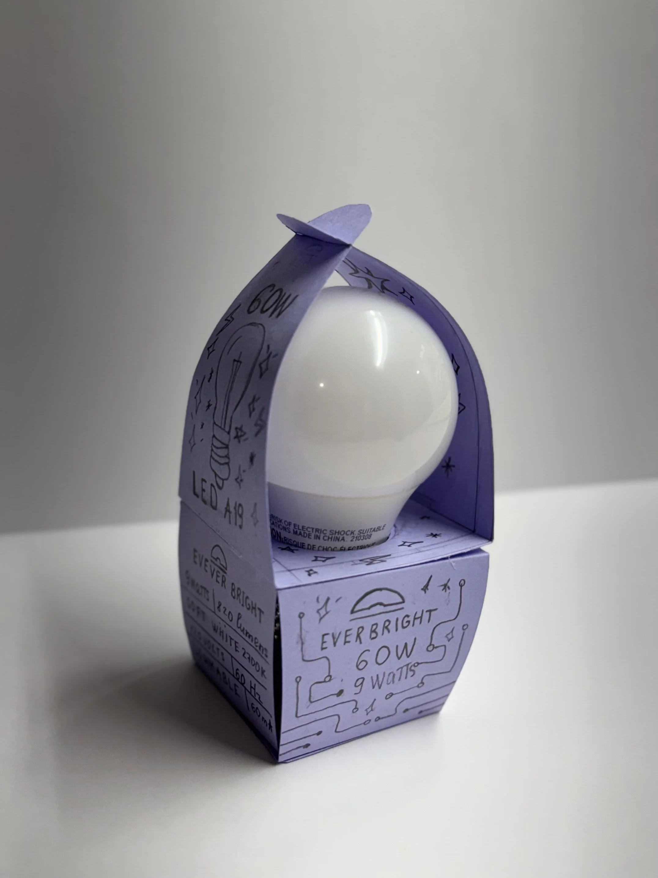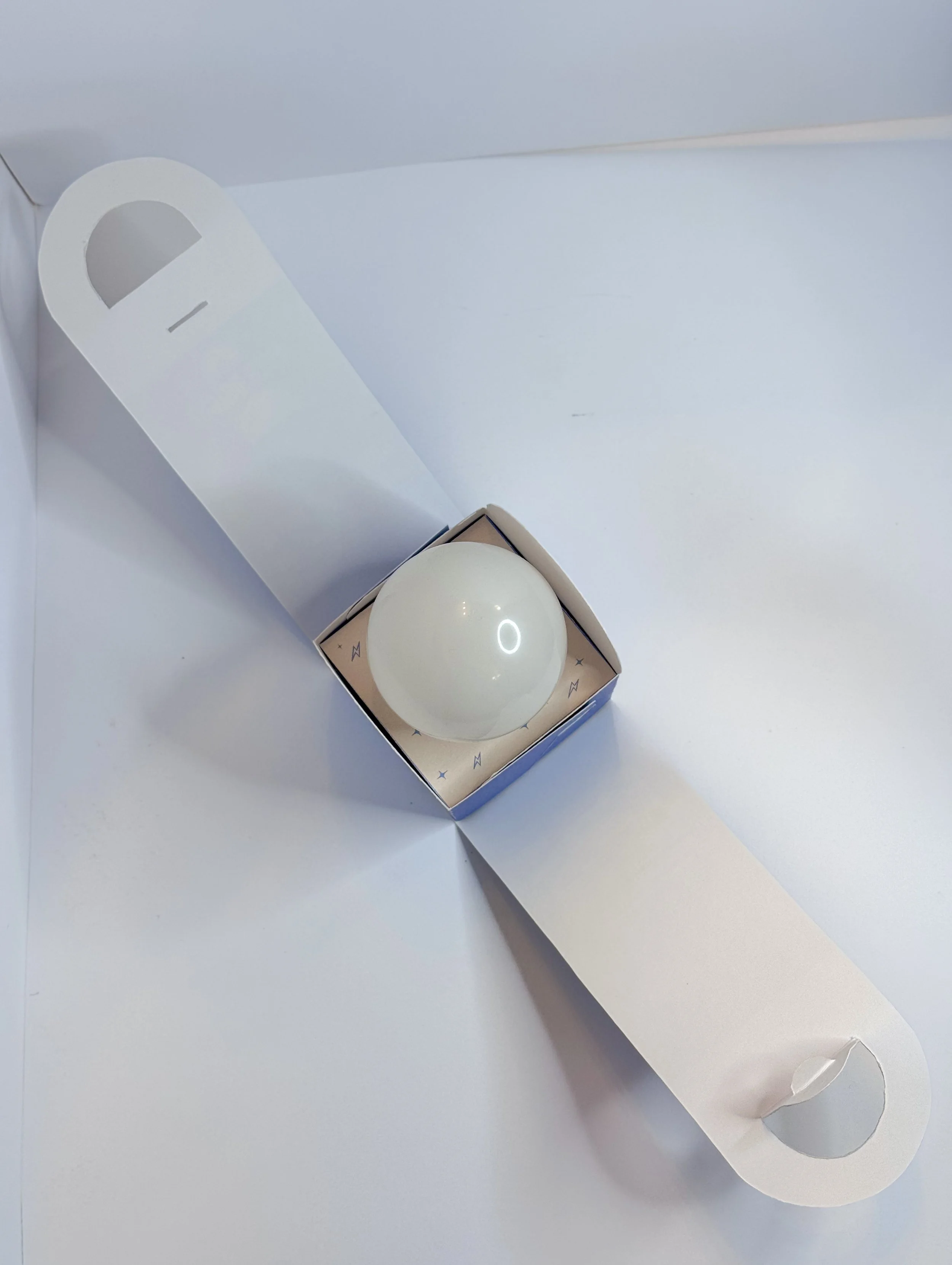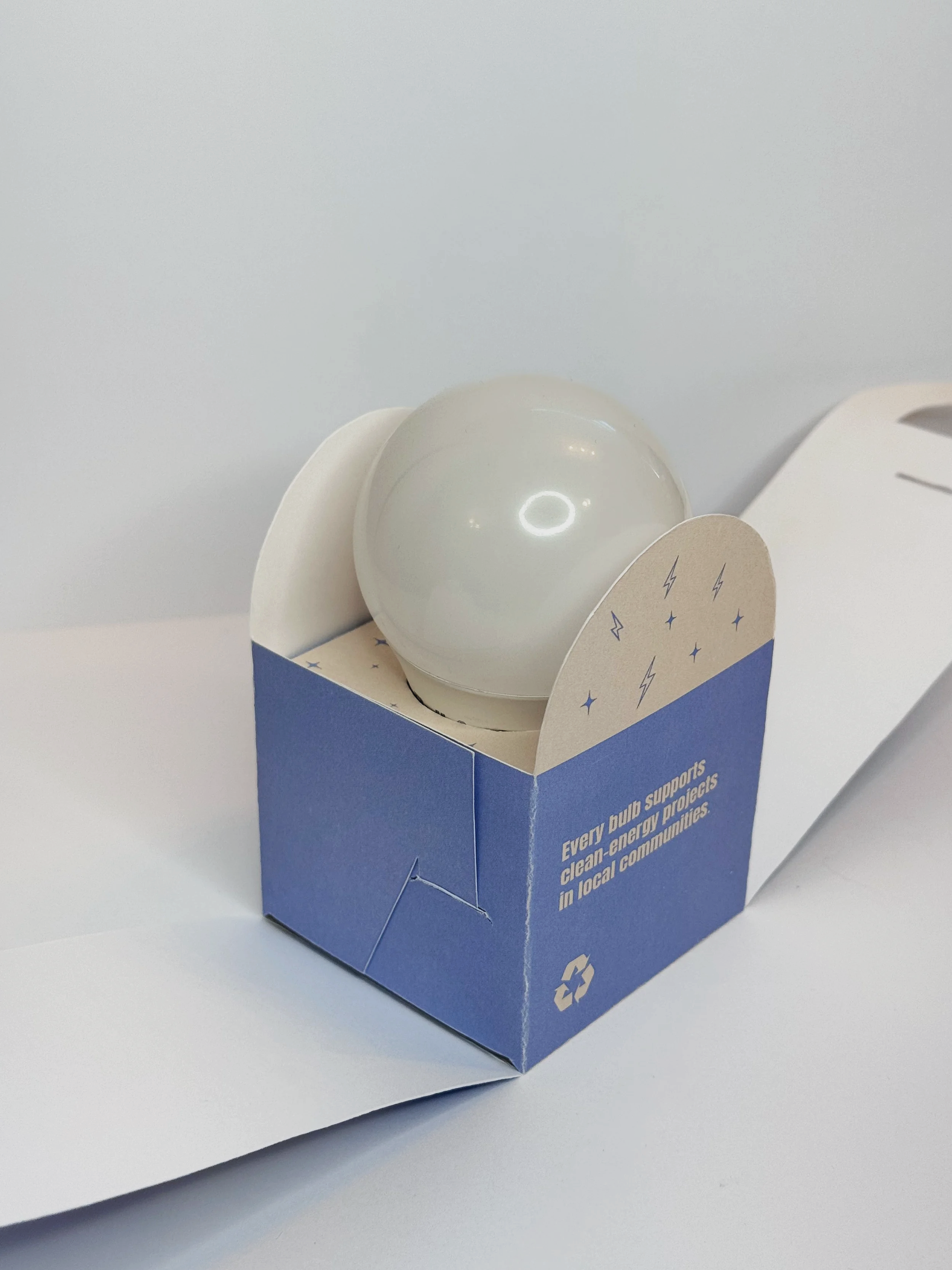 Paper-based light bulb package designed to feel cleaner, easier to carry, and fully biodegradable without looking like typical boring “hardware” packaging.