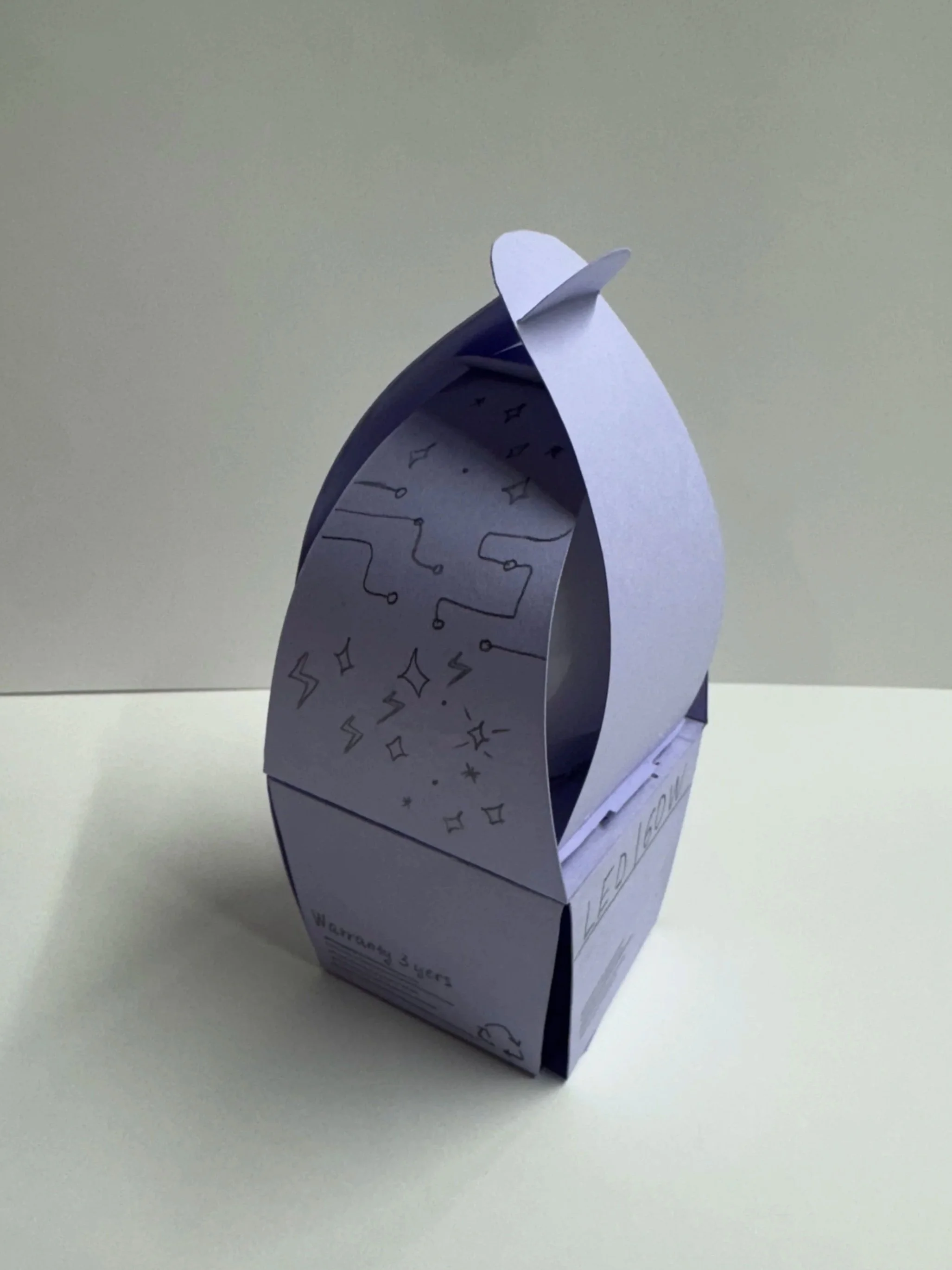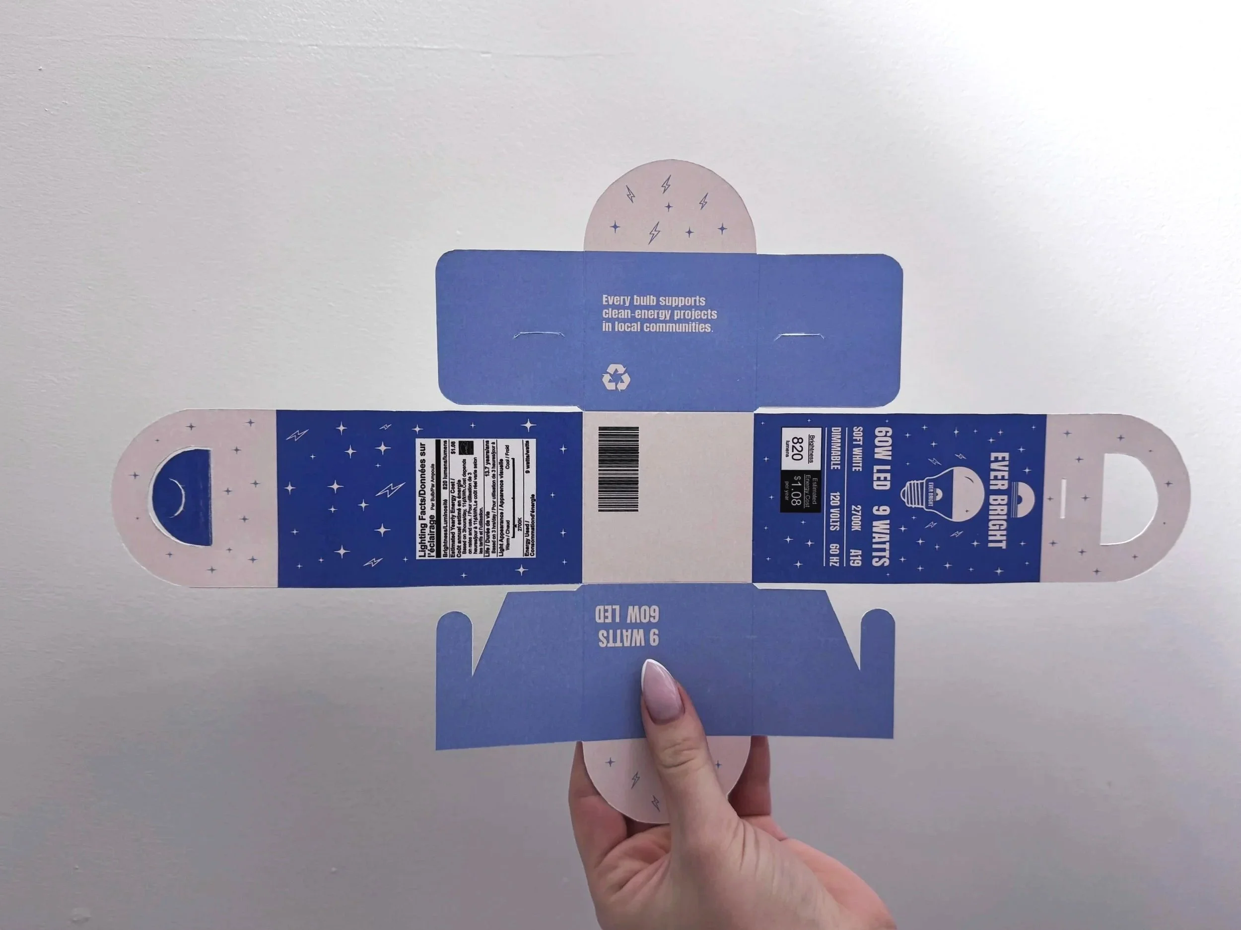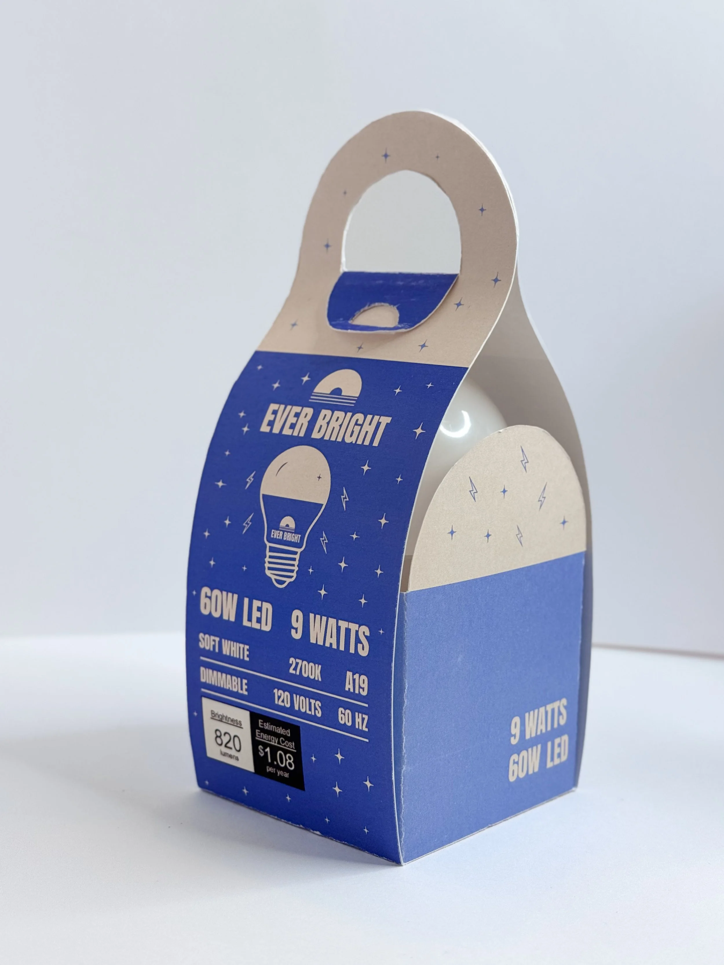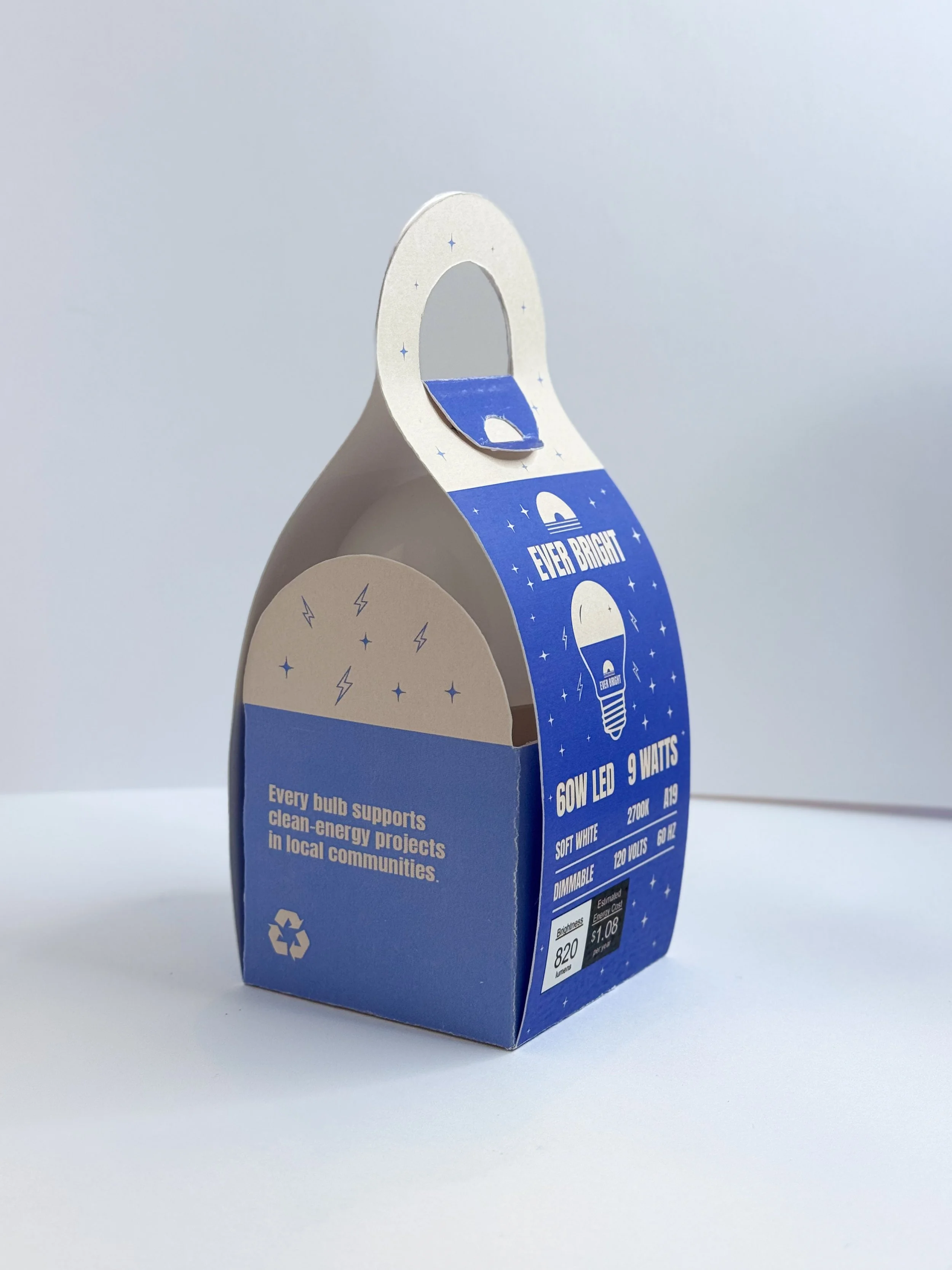 Paper-based light bulb package designed to feel cleaner, easier to carry, and fully biodegradable without looking like typical boring “hardware” packaging.